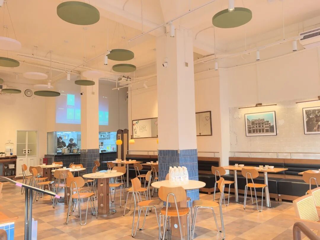 小馆总面积约251平方米,可同时容纳104人就餐;现场配备适老化座椅的优先就餐区,并设有轮椅专座,提高老人家现场就餐的舒适感、便利度;入口设置防滑斜坡、餐区配有老花镜、放大镜,银发经济展示区向老年朋友展示康复设备、健康工具等,以细节彰显对长者的关怀爱护。小馆配备万能烤箱、透明厨房、展示橱窗等餐饮设备,同时明厨亮灶、现做现卖,社区街坊可以清楚地看到食材处置、厨师蒸煮,吃得放心。